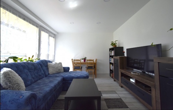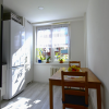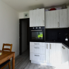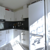 – Une cuisine équipée (four, micro-onde, lave-vaisselle, hotte, plaque de cuisson) ouverte sur le salon/salle avec accès au balcon