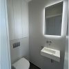 – Separates WC mit Waschbecken und eingebauten Schränken