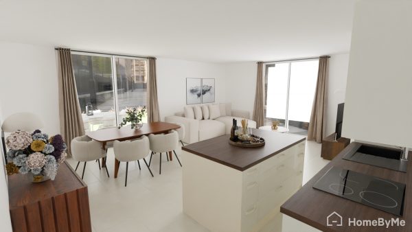 * Un espace 35,55 m² comprenant: une cuisine équipée ouverte sur le salon-salle à manger avec accès terrasse et jardin